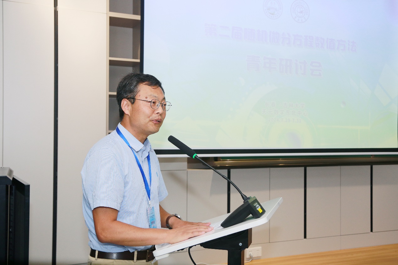 和国家天元数学东北中心的大力支持与帮助表示衷心感谢。他简要介绍了吉大数学及天元东北中心的发展概况和主要成绩。他指出,随机微分方程数值方法是当前热门的研究方向,在物理学、生物学、控制工程、金融工程等领域有着广泛应用,本次会议对于推动学科交叉和融合创新具有积极作用,不仅为学者们提供了一个交流和合作的平台,也将促进该领域的进一步发展,推动相关研究成果的应用。