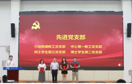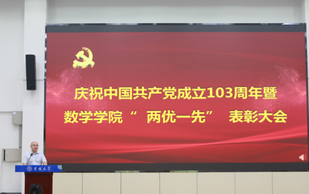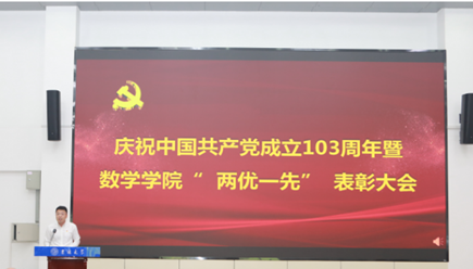 党委在数学楼二楼报告厅召开庆祝中国共产党成立103周年暨“两优一先”表彰大会。党委副书记陈续升主持会议并宣读表彰决定。