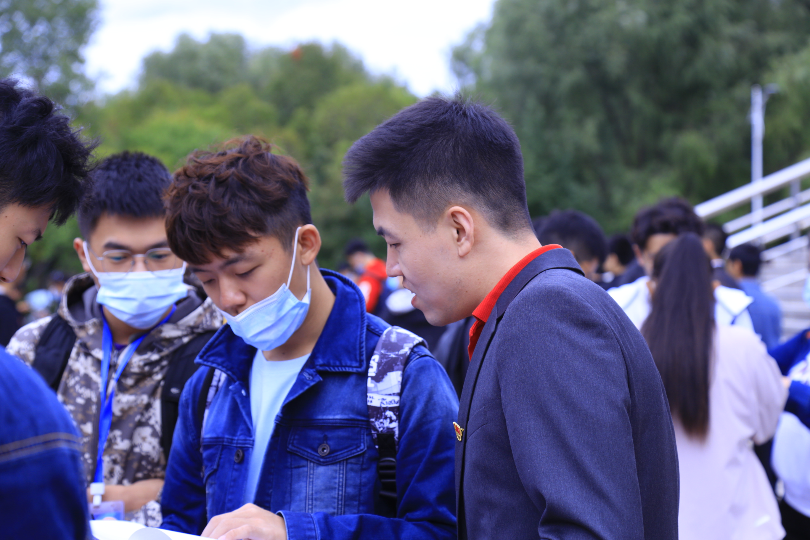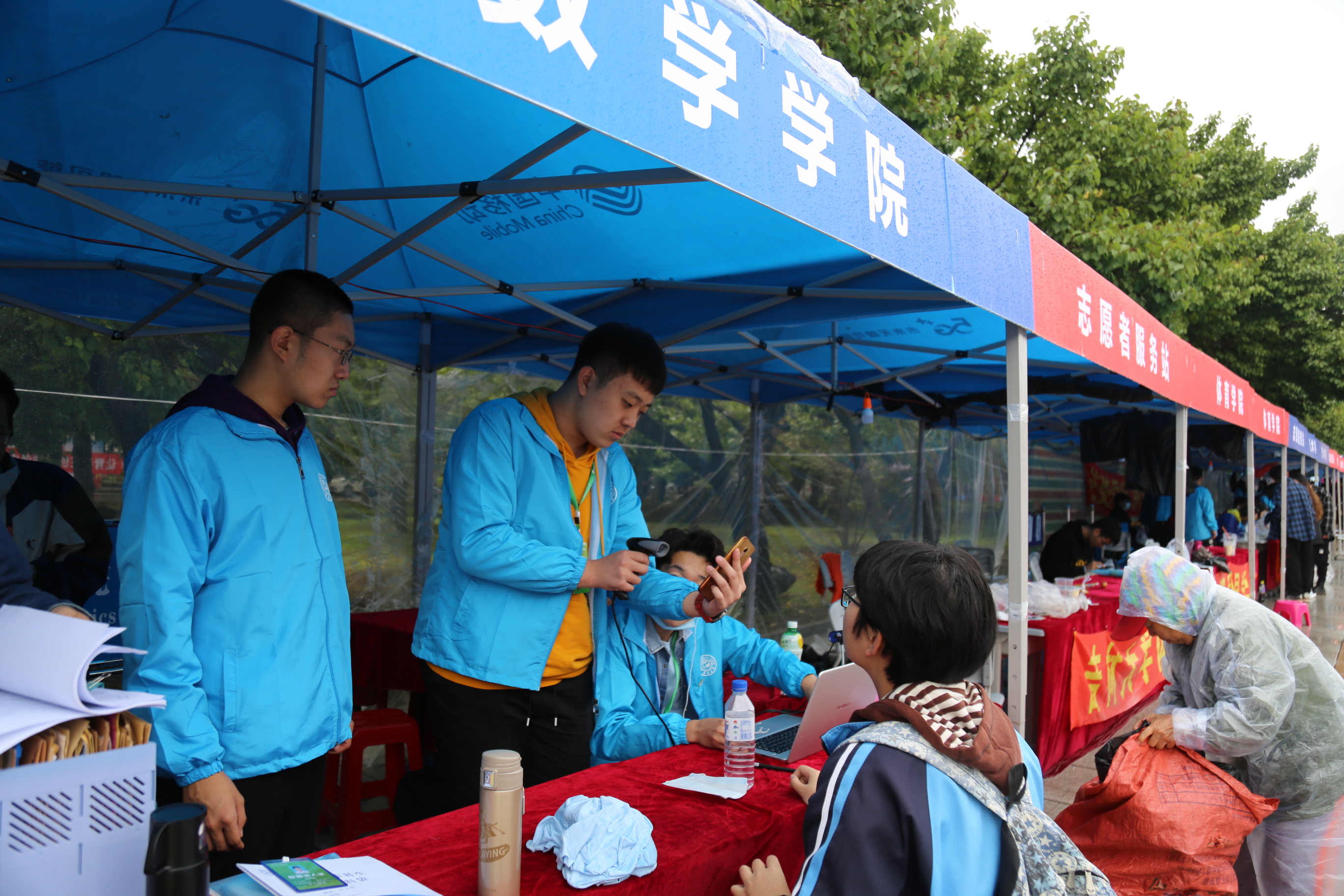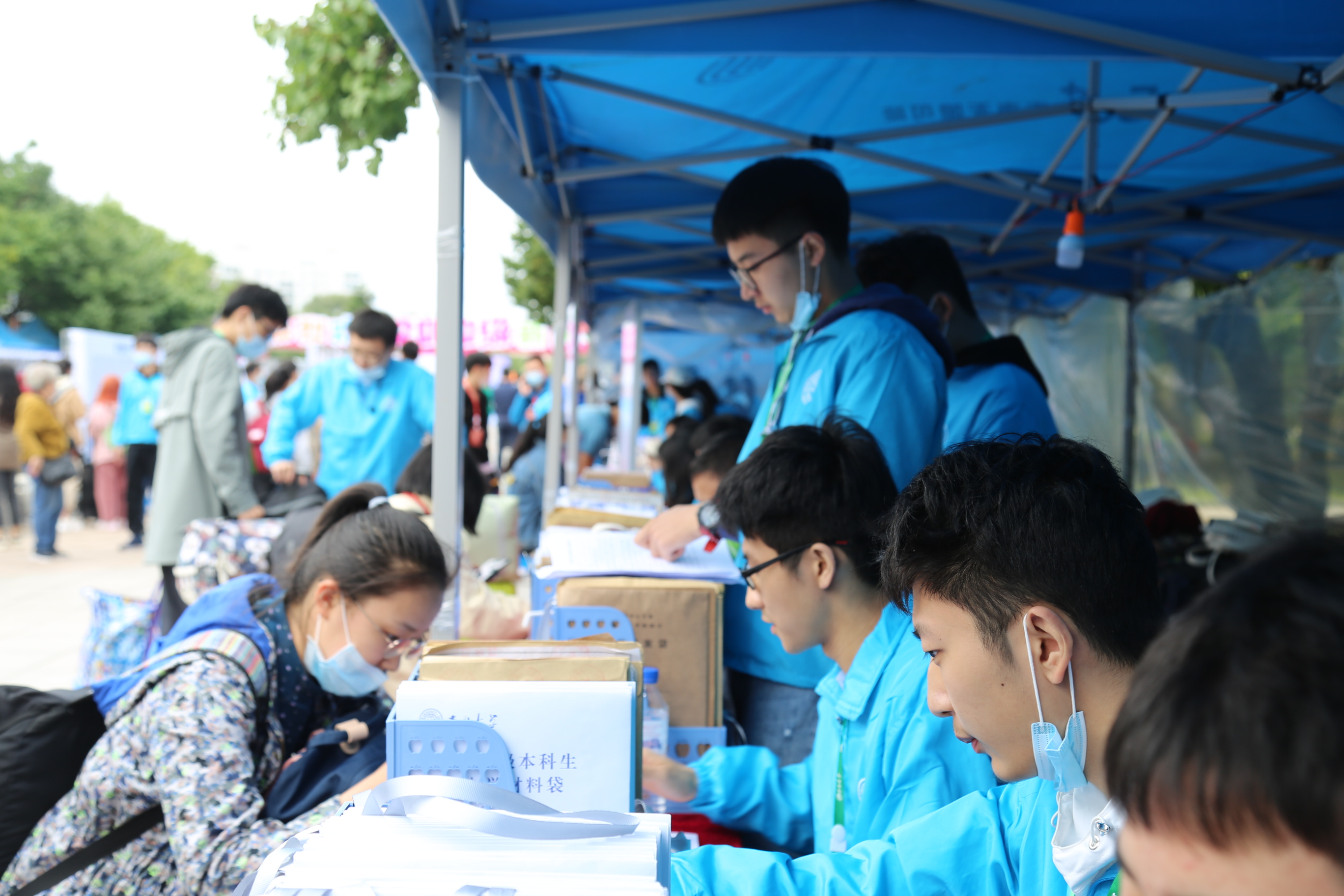 接新生工作正式开始。新生持录取通知书,从校门进入校园,在校门接待处需测温消毒、健康问询、核查“吉祥码”,随后通往五月花广场进行报道。我们拿着照相机在迎新现场,拍摄下新生们融入博彩App