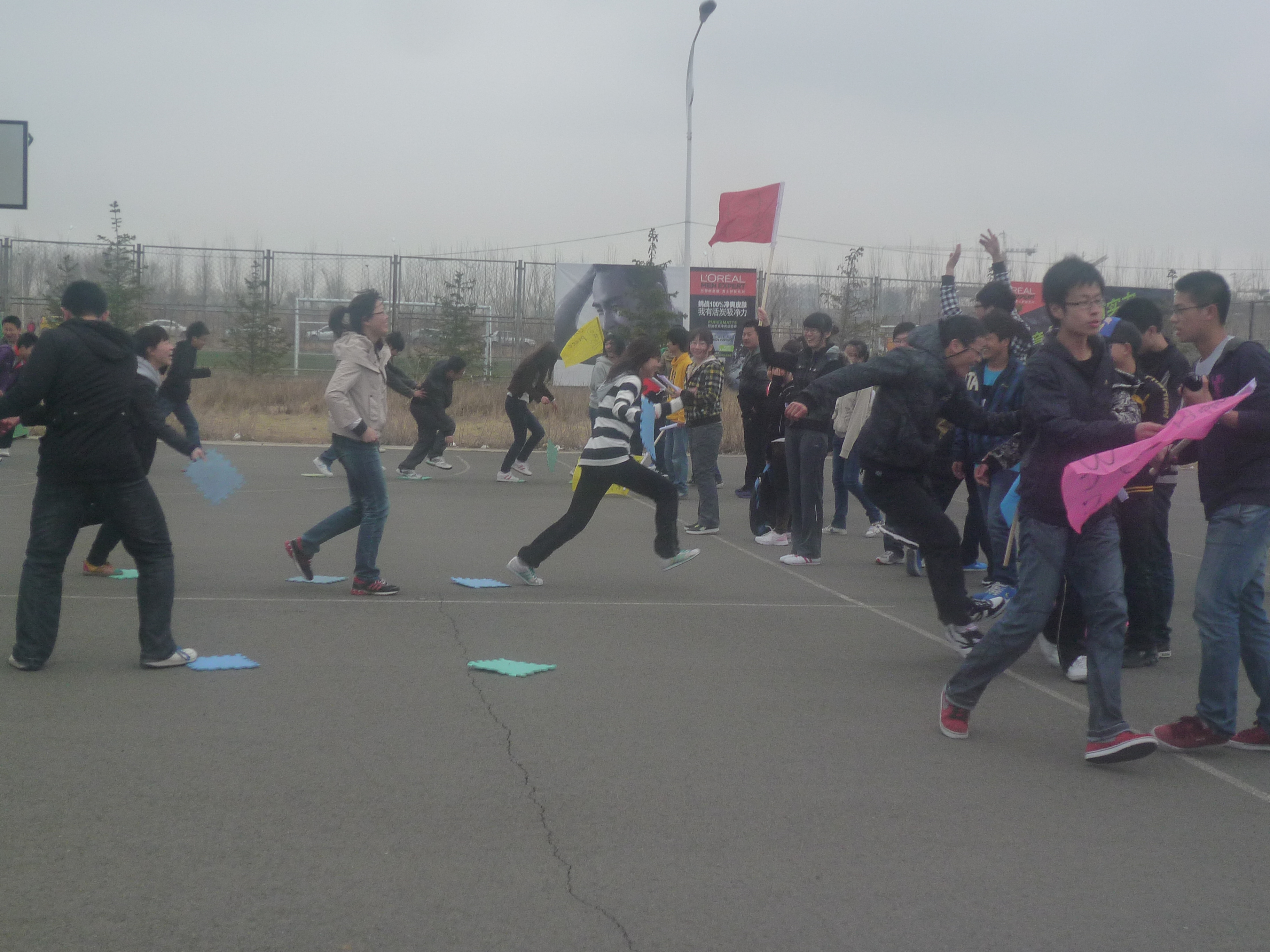的200多位同学自由编队,组成了八支队伍。活一个接一个的开始展开,共分五个环节“旗人旗事”、“爱的抱抱”、“袋鼠跳”、“搭桥过河”、“解手链”。每个活动都趣味十足,同学们积极性也相当高,配合默契。最终活动在同学们的欢声笑语中结束。