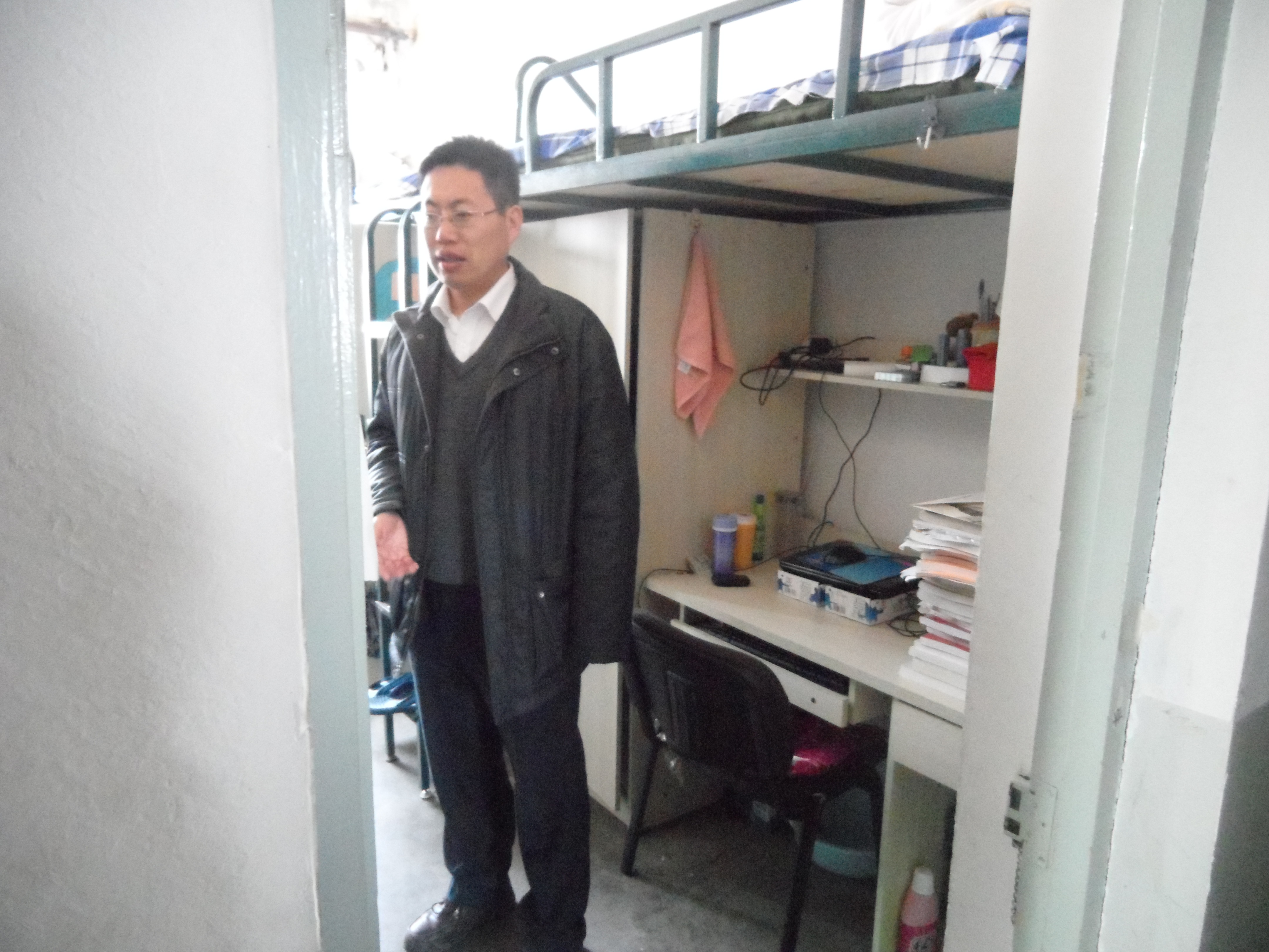活动从文苑一舍开始,通过南苑和经信,最后在大学城结束。在活动进行期间,赵老师以及三位辅导员老师首先与各寝室学生就学习、生活等方面进行了亲切的交谈并表达对学生的关爱,在查看了各学生寝室的实际状况后,对各学生寝室做了一些点评并就寝室环境卫生问题提出了一些改善的方法,强调防范安全防火隐患,杜绝违章用电行为。还统计了顶层漏水、墙壁发潮等情况,向博彩App