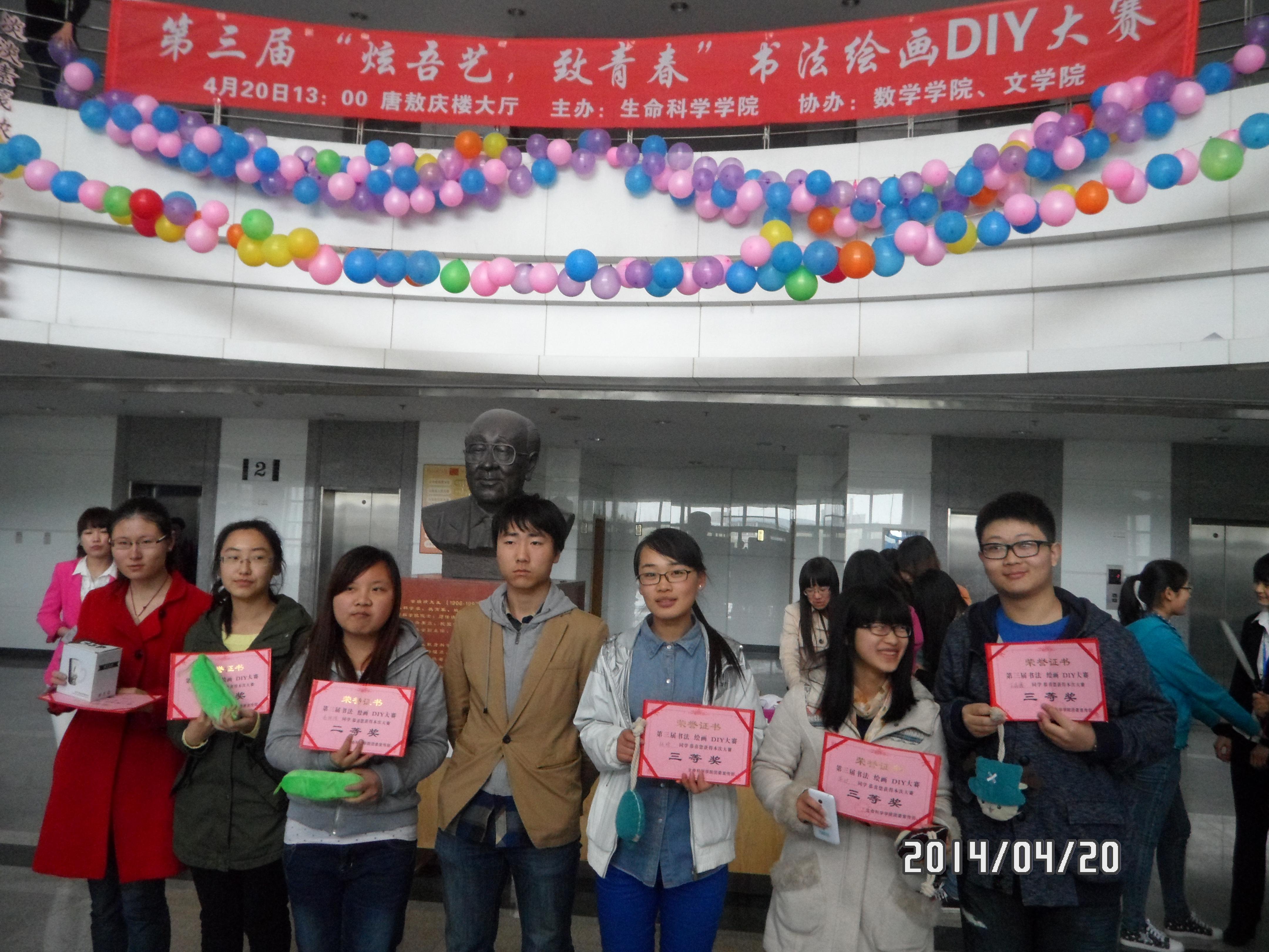 4月20日下午1:00主题为“炫吾艺,致青春”的第四届书法绘画DIY创意大赛在唐敖庆楼大厅隆重举行。本次活动由生命科学博彩App