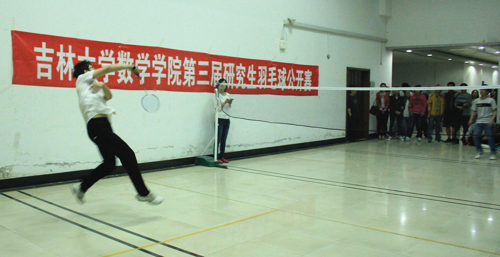 第三届研究生羽毛球公开赛”,并于2014年04月14日周一晚在数学楼拉开了帷幕,并进行了单打(女单、男单)的选手初赛及晋级赛。