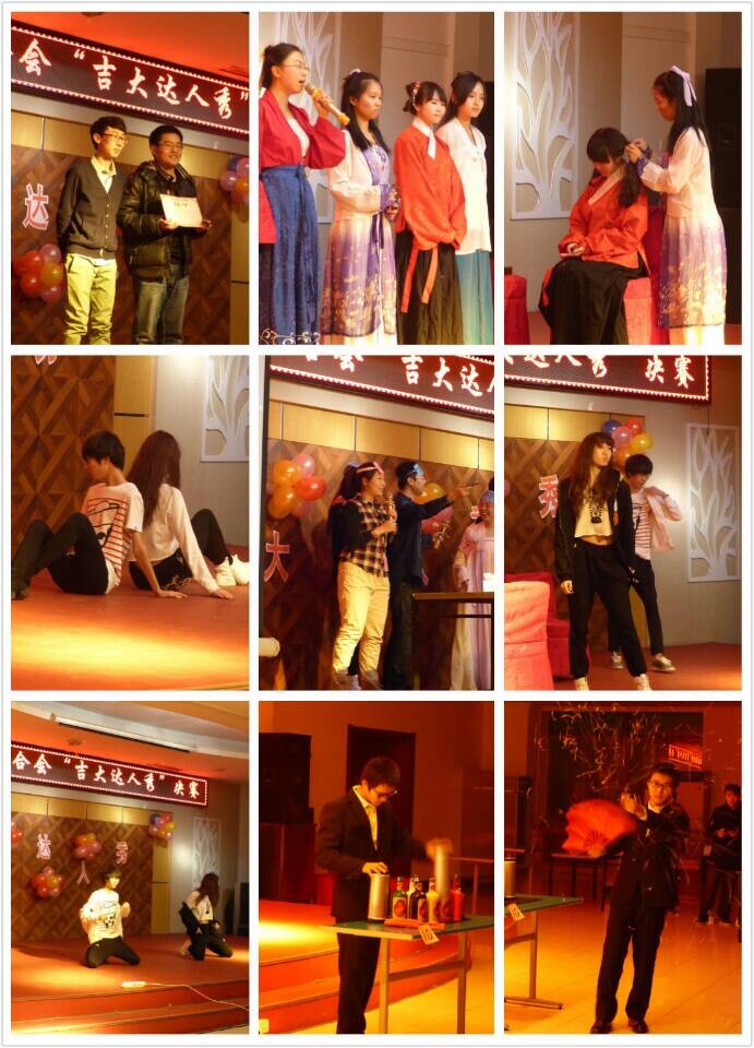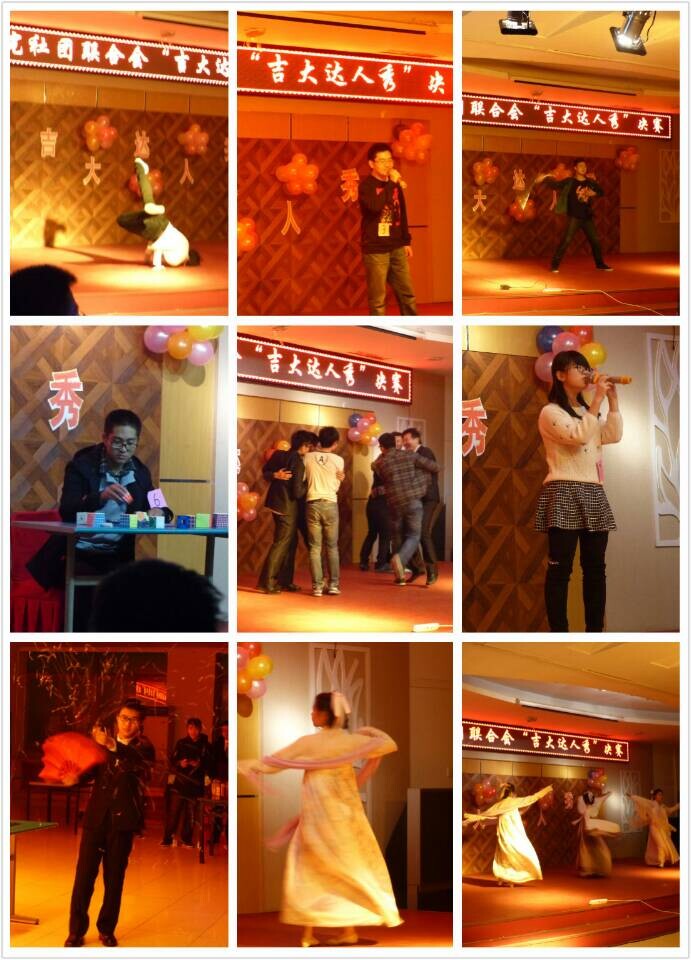 在莘子园三楼举办2014年度吉大达人秀活动。艺术与智慧之花盛放,选手们卖力的表演、微信墙上暖心的话语、亲友团的热情,都让这个晚上无比精彩。