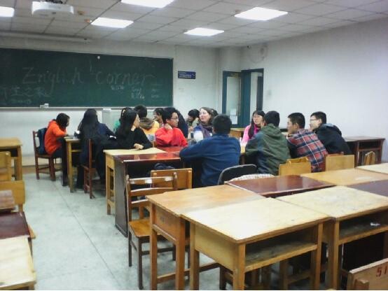 社团新生之家就成功举办了一次英语角,活动于晚上6点在逸夫教学楼小教室123正式开始,共有21名同学和三位外教参加。