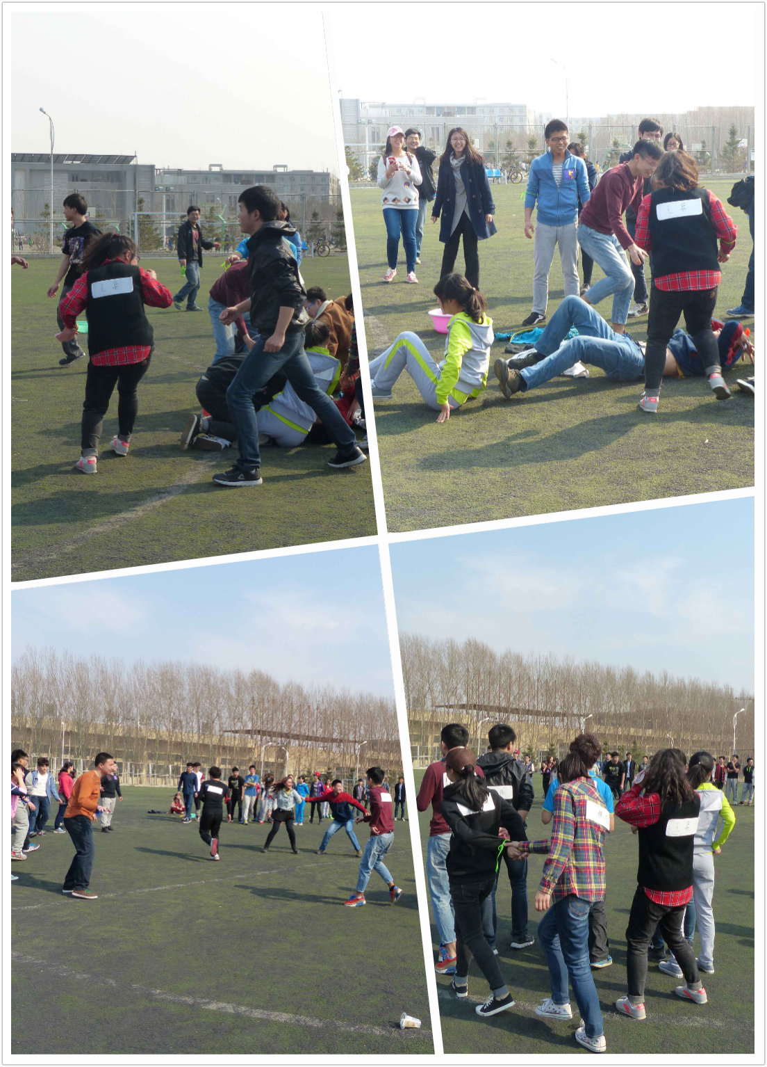 的学生都踊跃报名参加。主持人讲完活动规则之后,队员们便开始了寻找宝藏之旅,他们用自己的热情和智慧赢得一个又一个线索,无论是共同踢毽子,拍照比赛还是指压板上跳绳和寻找神秘接头人,同学们都克服困难积极完成,这次活动收获的不仅是得到拼图的快乐更是一种团结的精神。尤其是最后一个环节的撕名牌大战“duang,你来撕我啊”同学们更是期待已久,战况相当激烈,同时我们也见识到了女汉子的威力,巾帼不让须眉的魄力。为了找到最终的宝藏,大家累并快乐着,活动在大家的笑声中圆满结束。