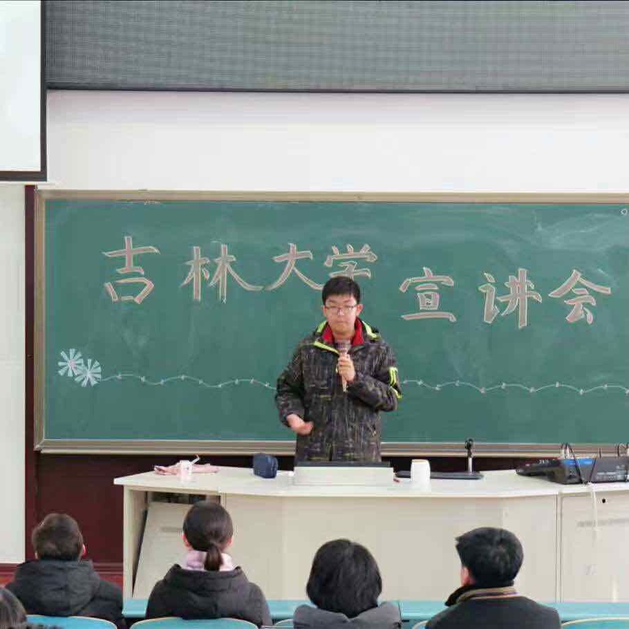号召,组织其他校友在寒假期间回到了他的母校——吉林市第一中学进行了宣讲活动。