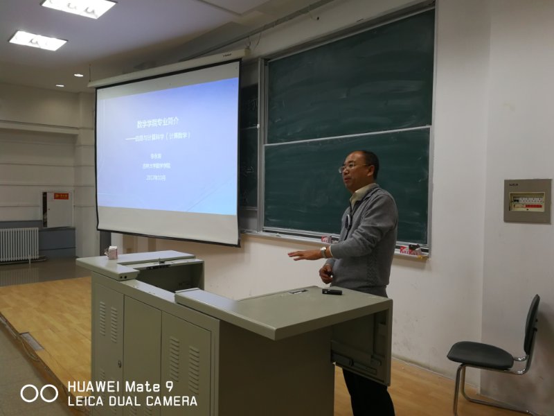 此次介绍大会由王德辉教授主持。首先,由计算数学系主任李永海教授介绍信息与计算科学专业,此专业最初为国家二级学科,两次被评为国家二级一流学科,随着大数学的发展,被评为国家一级学科。而今它的主干课程有数学分析、高等代数、空间解析几何、实变函数等,李永海教授也为我们介绍了相应学科的带头人,阵容十分强悍。随后,概率统计与数据科学系朱复康教授介绍了统计学相关知识,他称统计学不止是学科学,也学艺术。在定义之后,介绍了统计学门下的各个特色学科及其带头人,具体有应用概率论、大数据分析、数理统计、生物与医学统计等。最后还介绍了统计学与金融统计的内在联系。紧接着,应用数学系主任王春朋教授介绍的了数学与应用数学专业,此专业是博彩App