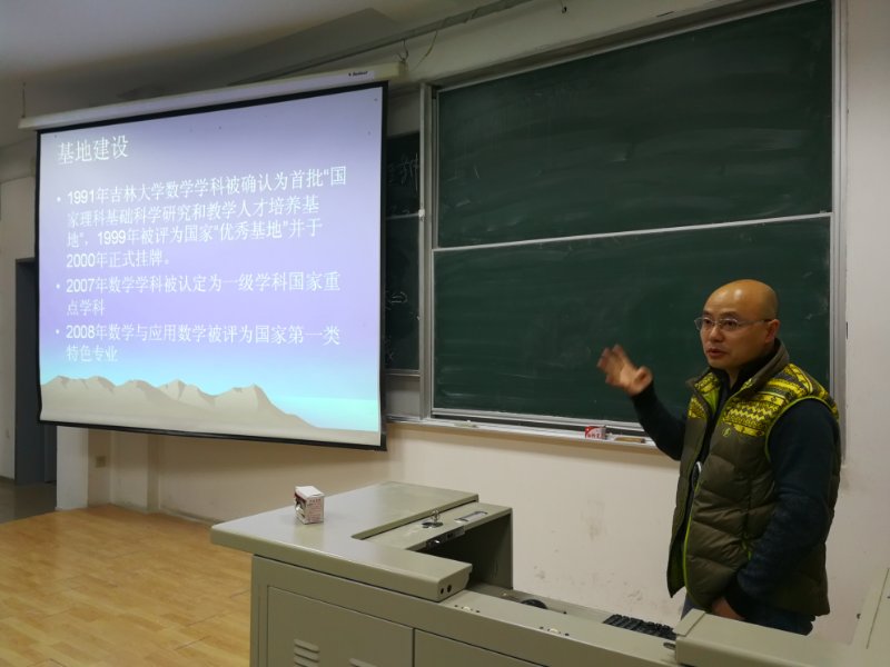 特色专业之一,今年也入选了双一流专业。王春朋教授先向大家介绍了数学与应用数学的教材建设,之后重点介绍了其研究方向及学科带头人,具体有动力系统,偏微分方程、泛函分析、代数、拓扑,控制及运算。