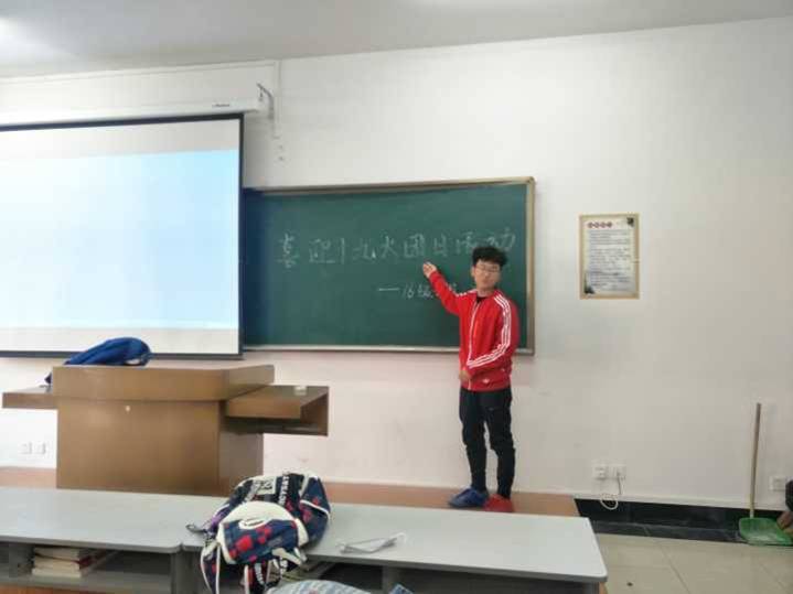 班会过程中,首先由团支书做开场演讲兼主持工作,为大家介绍十九大的背景。随后,班长组织同学观看十九大相关视频,班级同学分为若干小组讨论十九大的未来与过去,回眸过去,并展望未来,每个小组在讨论后选出一位代表上台前演讲,发表自己对于十九大的见解认识。大家认为我们这个拥有几千年悠久历史的文明古国,曾几度兴衰,从“九一八”的战火到卢沟桥事变,从南京大屠杀,到皖南千古奇冤,外强内患,村村遗骨,处处狼烟,在中华民族危亡的紧急关头,中国共产党领导千百万中国劳苦的大众,用锋血和生命赢得了中国革命的伟大胜利,天安门城楼上的庄严宣告,响彻了大江南北,震惊了整个世界,中国人民从此进入一个当家做主的新时代,祖国发生了日新月异的变化:工农业生产蒸蒸日上,人民生活普遍改善,科学技术突飞猛进,改革开放蓬勃发展。