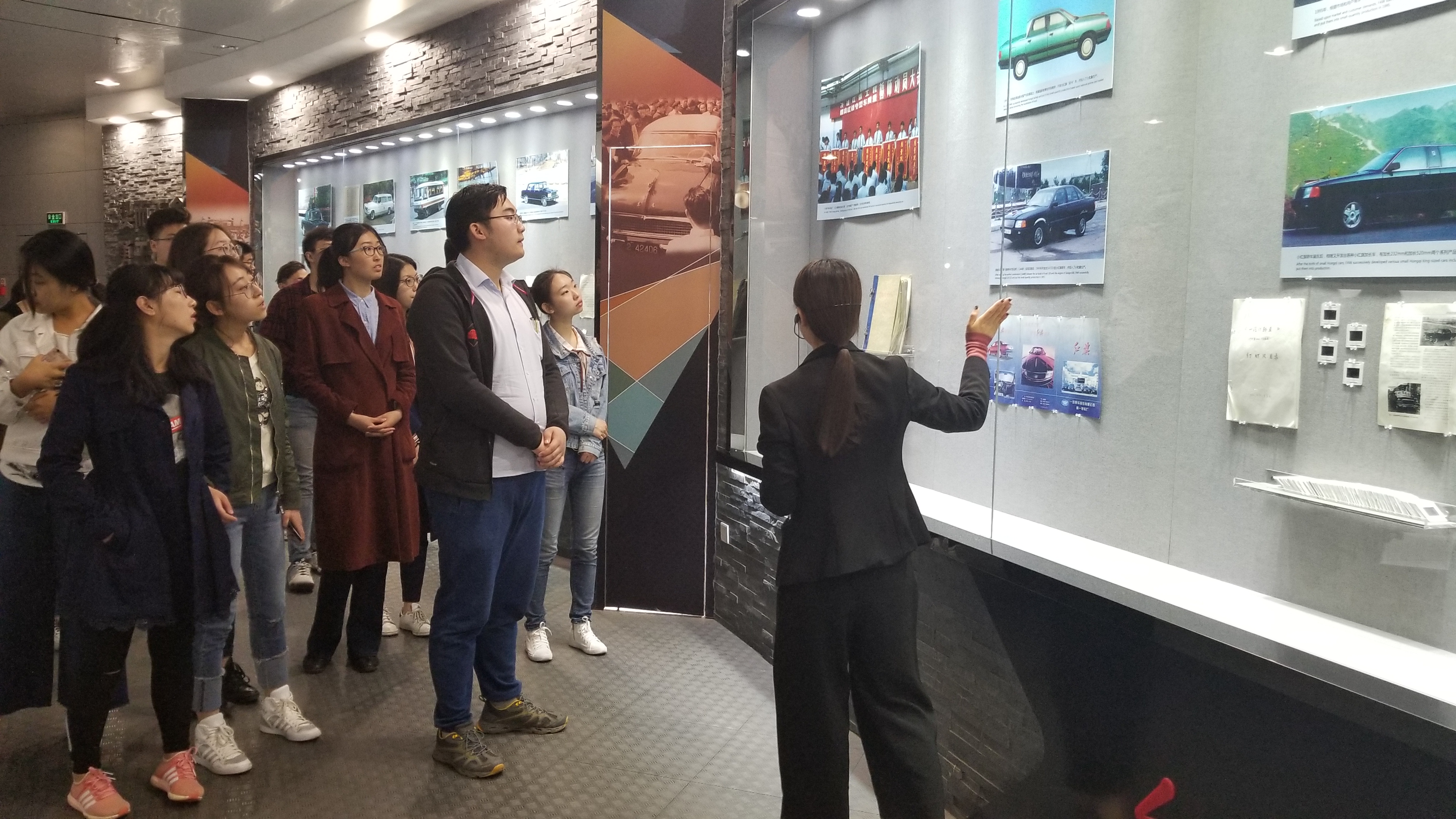 红旗文化展馆是中国第一家以汽车品牌命名的文化展馆。学生们一起参观了红旗文化展馆的三个不同发展历程的展区。参观过程中,展馆的讲解员配合文物、模型、照片、实物、沙盘等形式,向学生们详细地讲述了我国第一个民族轿车品牌的故事。学生们认真地聆听,积极地与讲解员进行互动交流,切身地感受到了了几代红旗人艰苦奋斗的创业精神和敢于拼搏的时代精神。