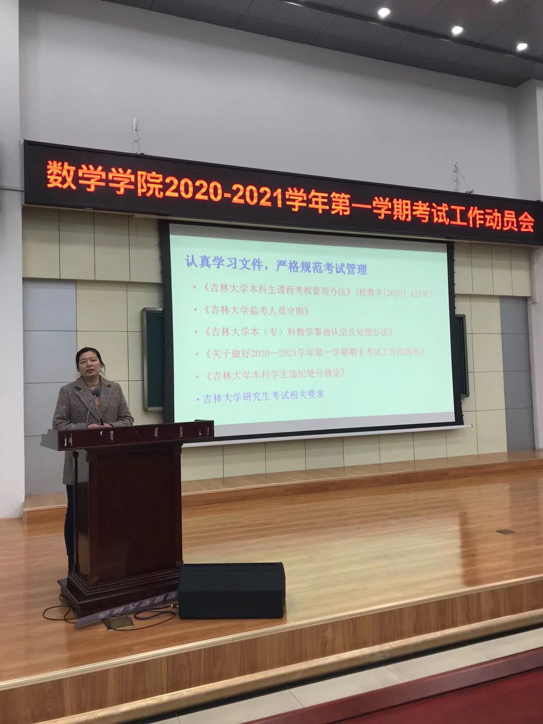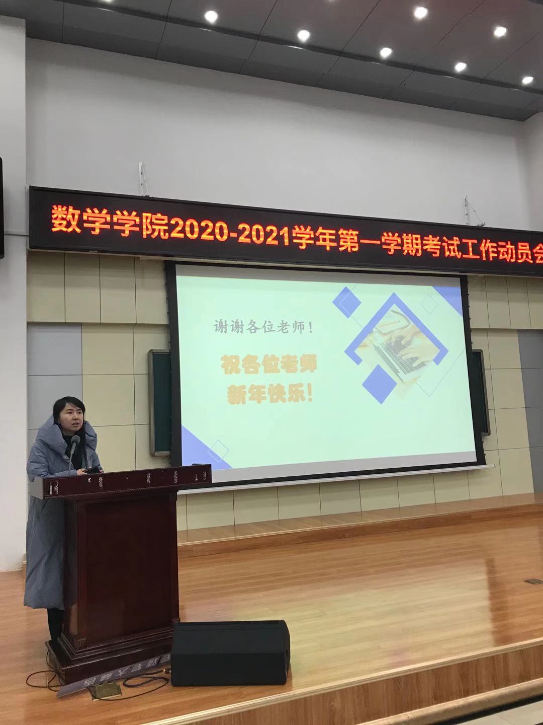 在数学楼二楼报告厅召开2020-2021学年第一学期考试工作动员会,就本学期期末考试工作做出布置和要求。博彩App