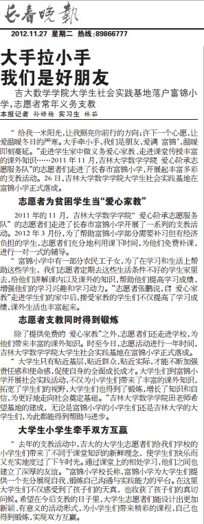 《长春晚报》今年第4次报道博彩App 社会实践与志愿服务活动