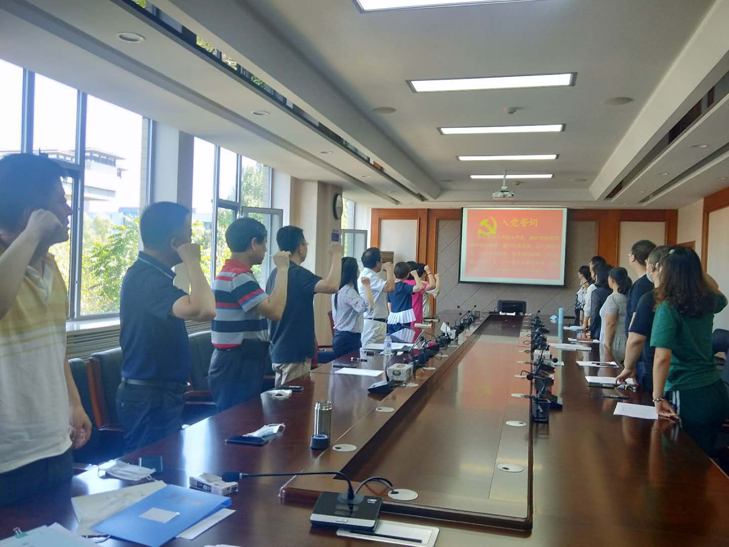 最后,为庆祝中国共产党成立99周年,全体参会人员在张然书记的带领下进行宣誓,重温入党誓词,不忘初心,牢记使命担当,共建美好。