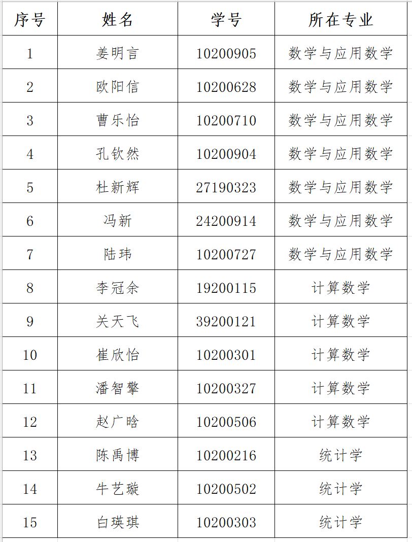 按照《博彩App 2024年招收优秀应届本科毕业生直接攻读博士学位研究生校内预选工作的通知》有关要求,经学生自愿报名、资格审查、推免工作小组会议讨论等环节,确定姜明言等15名同学为博彩App 2024年招收优秀应届本科毕业生直接攻读博士学位研究生校内预选拟推荐人选。名单如下: