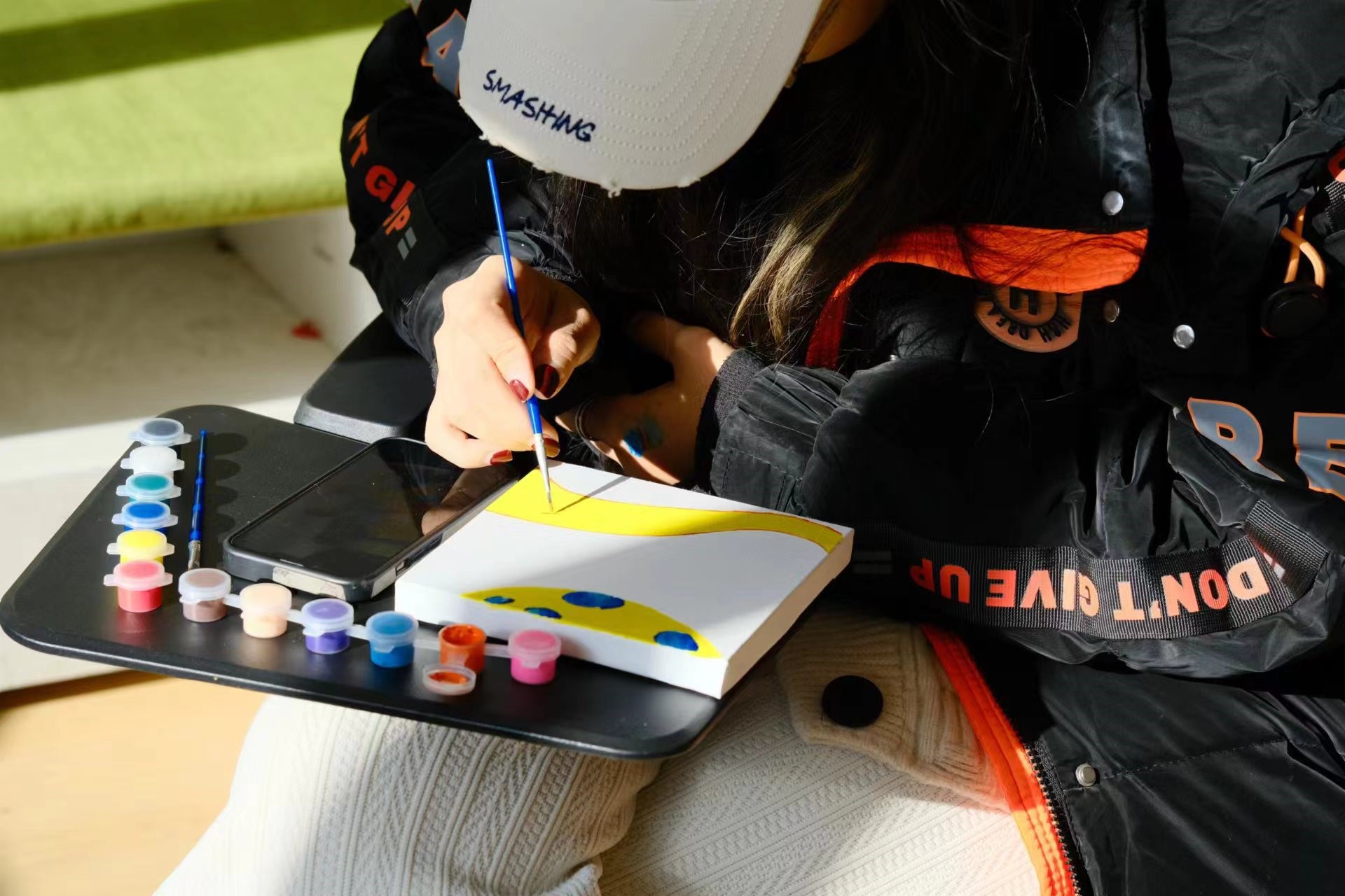 此次活动从早上8点持续到晚上9点,活动对每位同学的创作时间没有限制,这也使得同学们可以尽情体验心流创作,达到与自己内心深处交流的目的,每一幅作品都是同学们心灵的表达,承载着同学们对生活、对艺术、对未来的独特理解。