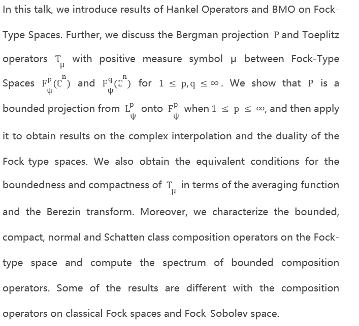 报告题目:Operator theory on Fock-type spaces