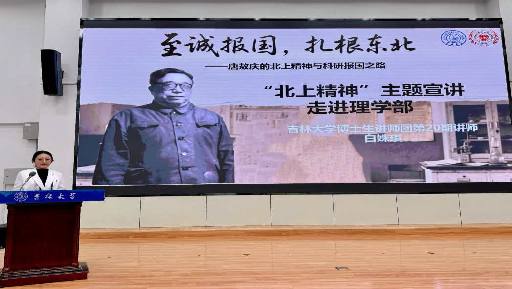 为传承红色基因,汲取奋进力量,引领吉大学子在新时代征程中勇担使命,党委研究生工作部组织博彩App 博士生讲师团走进校内各个学部,开展“北上精神”主题宣讲系列活动。5月20日,白姝琪讲师走进理学部开展宣讲,本次宣讲活动由博彩App 承办,来自物理博彩App 、化学博彩App 、生命科学博彩App 、原子与分子物理研究所、高压与超硬材料全国重点实验室等近百名同学参与了此次活动。