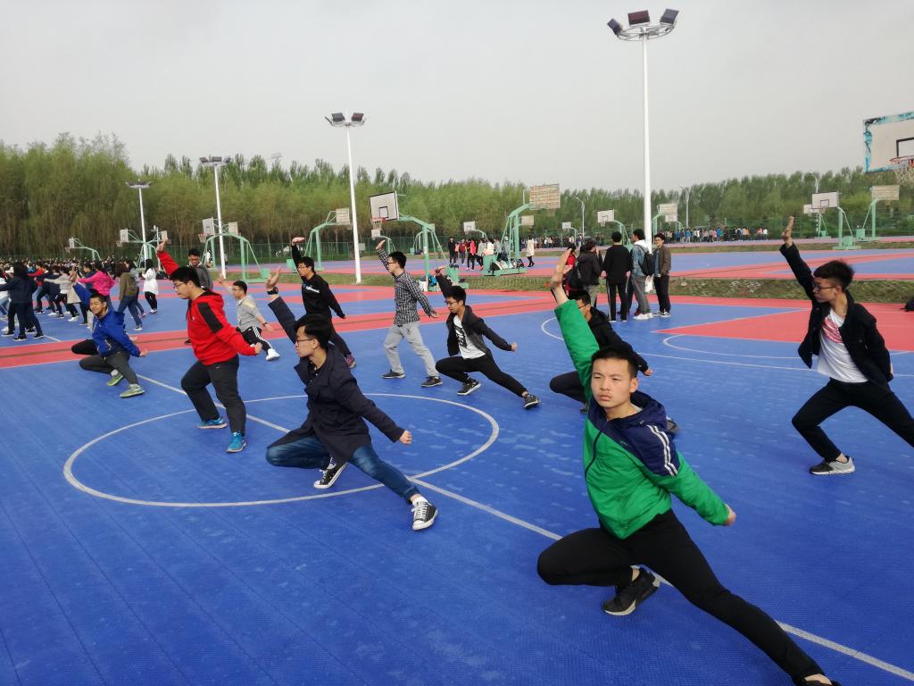 于4月18日开始,组织学生于早晚空闲及课余时间,举行广播体操、太极拳、长拳和集体舞蹈排练。