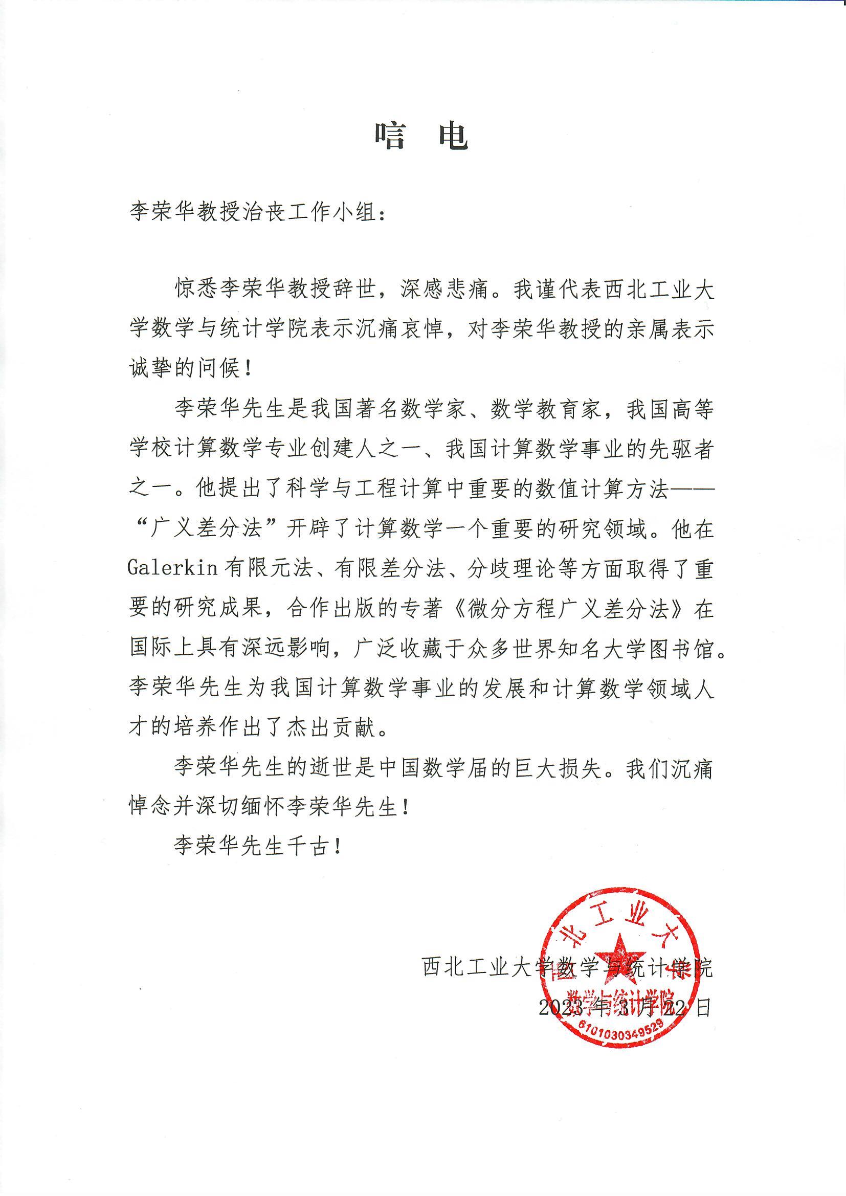 西北工业大学数学与统计博彩App 唁电