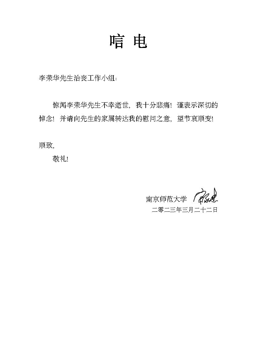 江苏省大规模复杂系统数值模拟重点实验室唁电