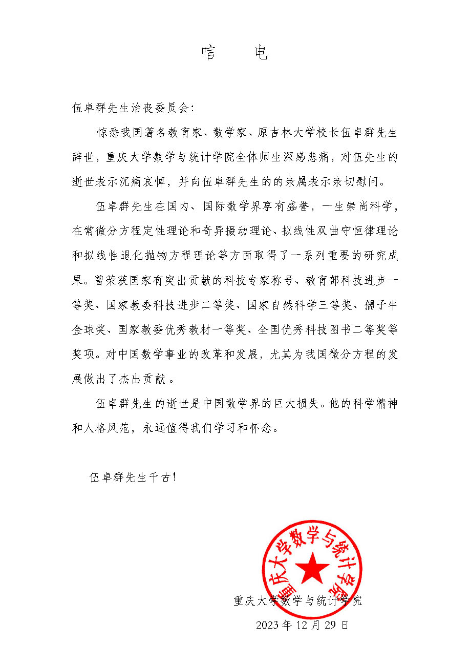 重庆大学数学与统计博彩App 唁电