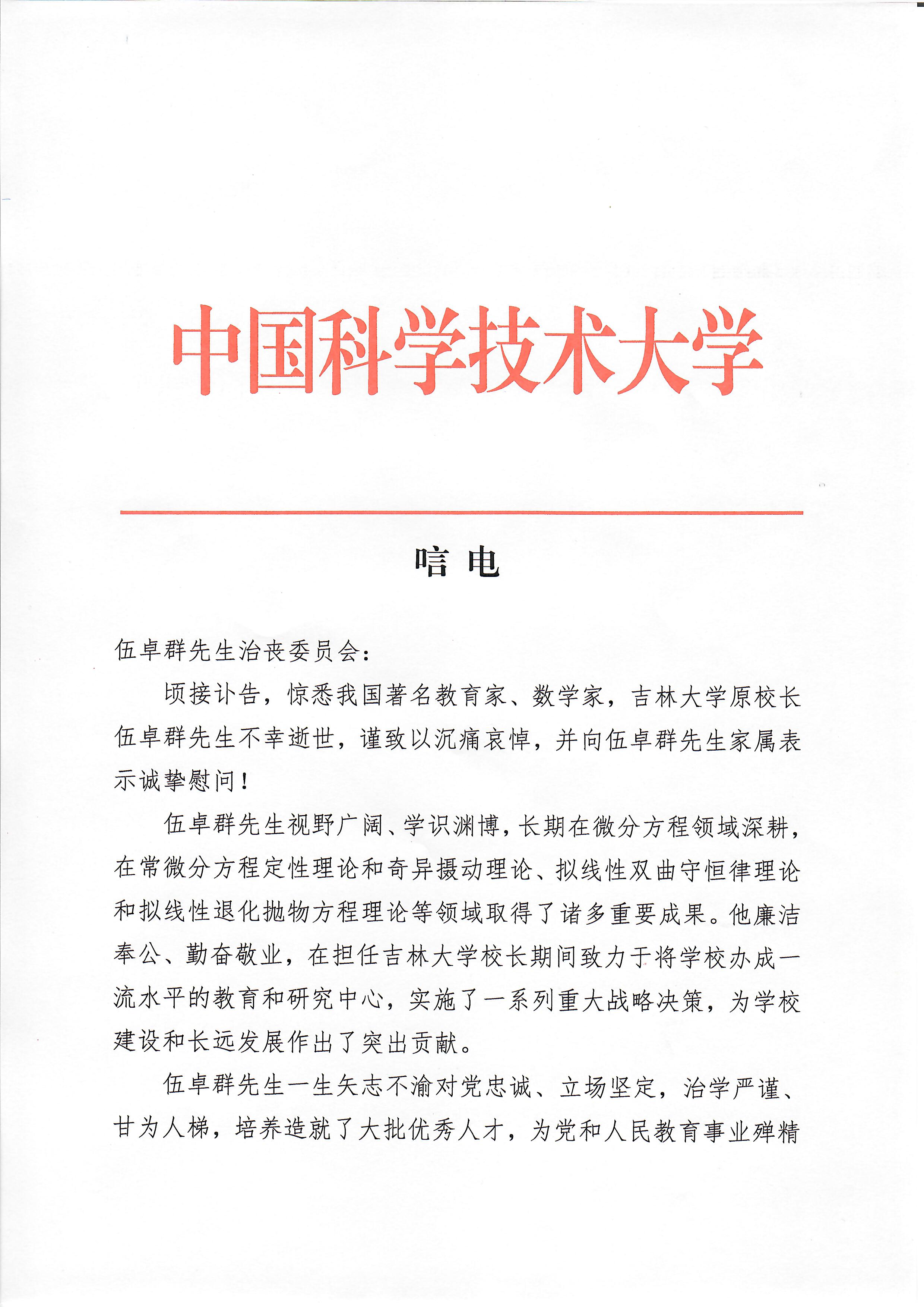中国科学技术大学唁电