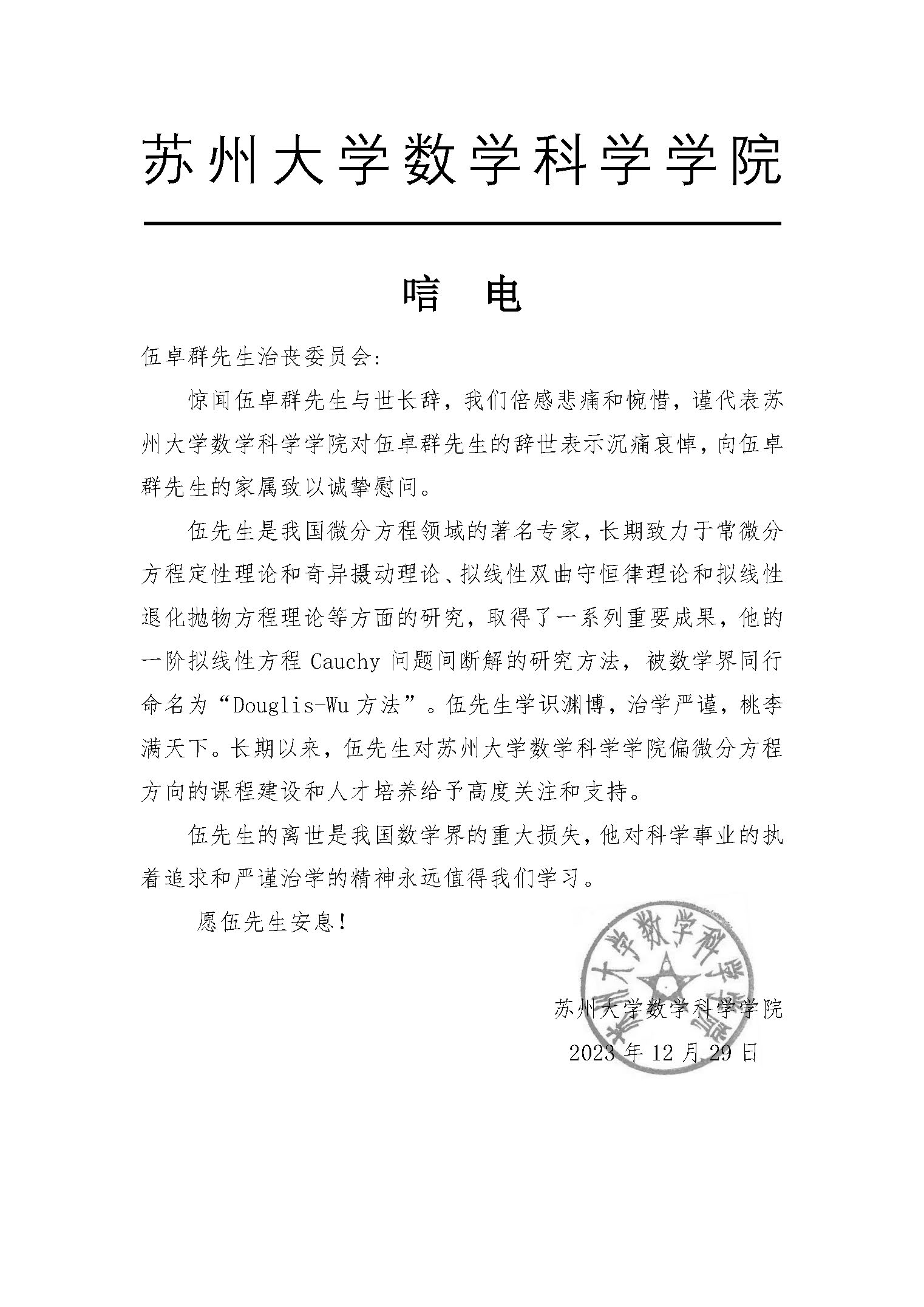 苏州大学数学科学博彩App 唁电