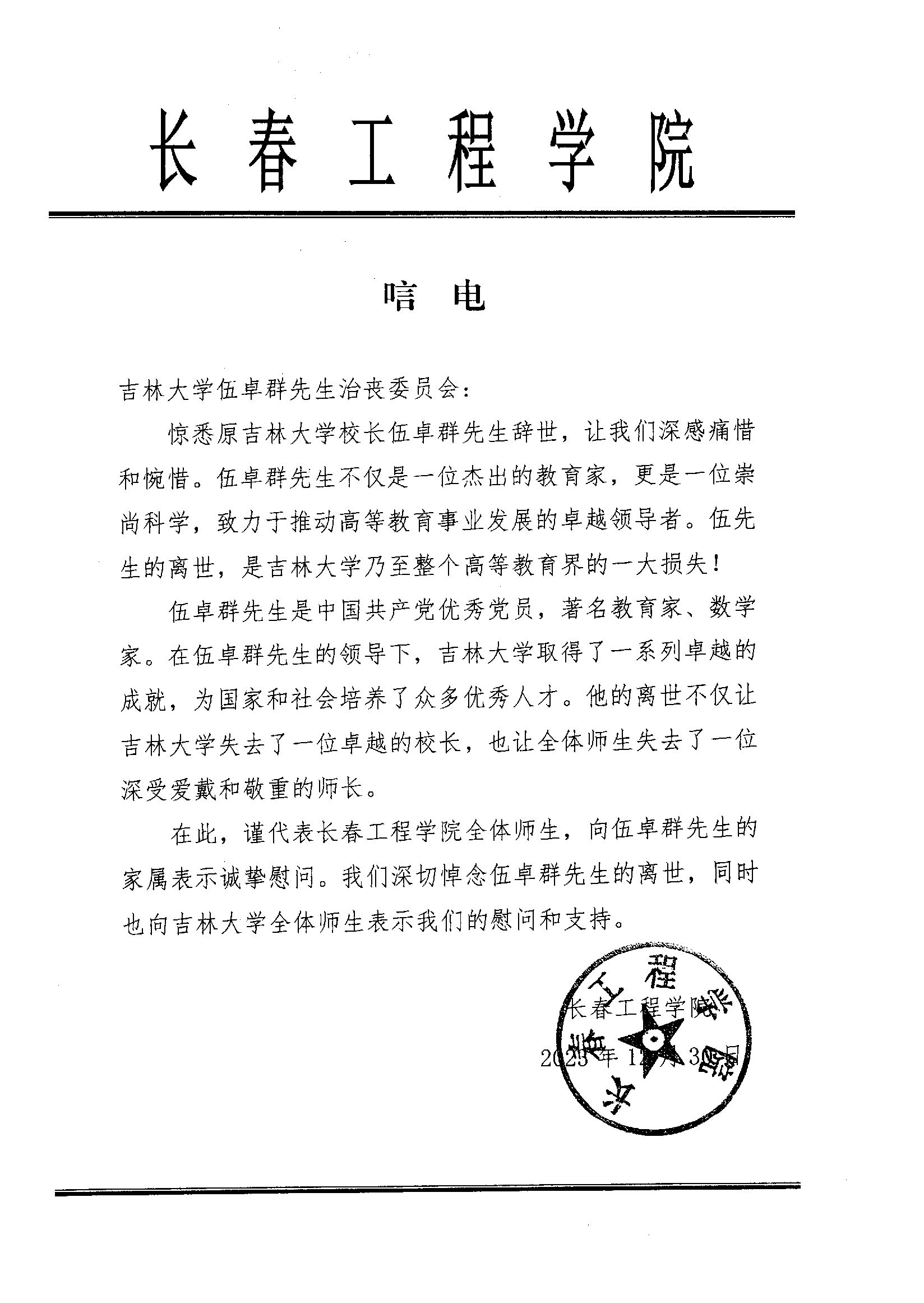 长春工程博彩App 唁电