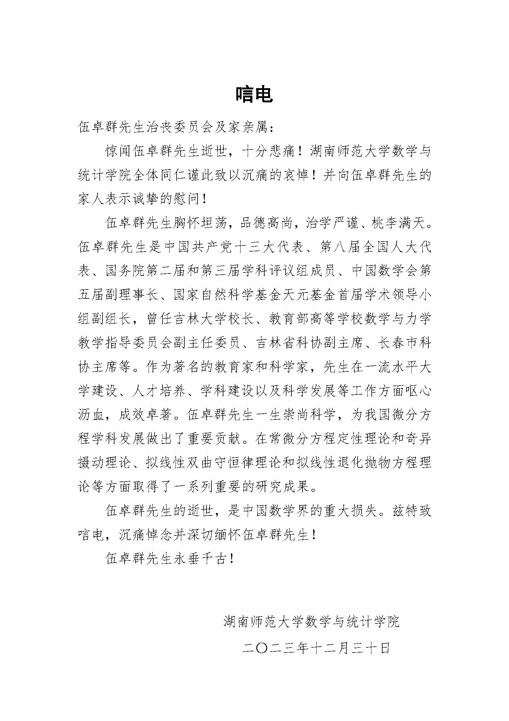 湖南师范大学数学与统计博彩App 唁电